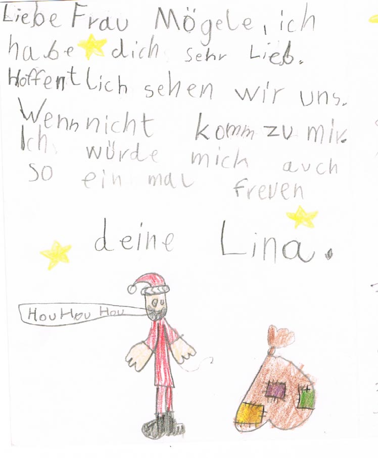 Ein Brief zu Weihnachten von Lina, 7 Jahre: